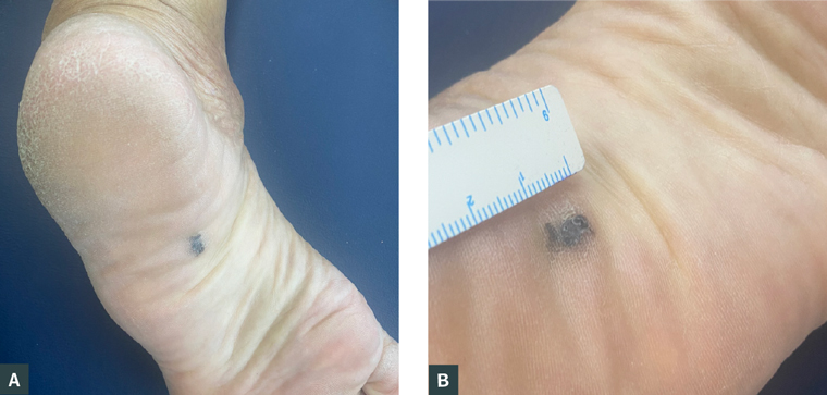 A woman, aged 69 years, presented with a lesion on the sole of her left foot that had been present and slowly enlarging for over a year (Figure 1). She was not concerned by the lesion, but her podiatrist advised her to get it checked. The lesion was asymptomatic.